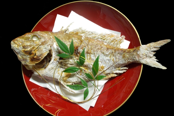 お祝いを華やかに演じる「大きな鯛(1kg以上)」の焼物はいかがでしょうか?端午の節句プランの追加料理としての特別注文になります。